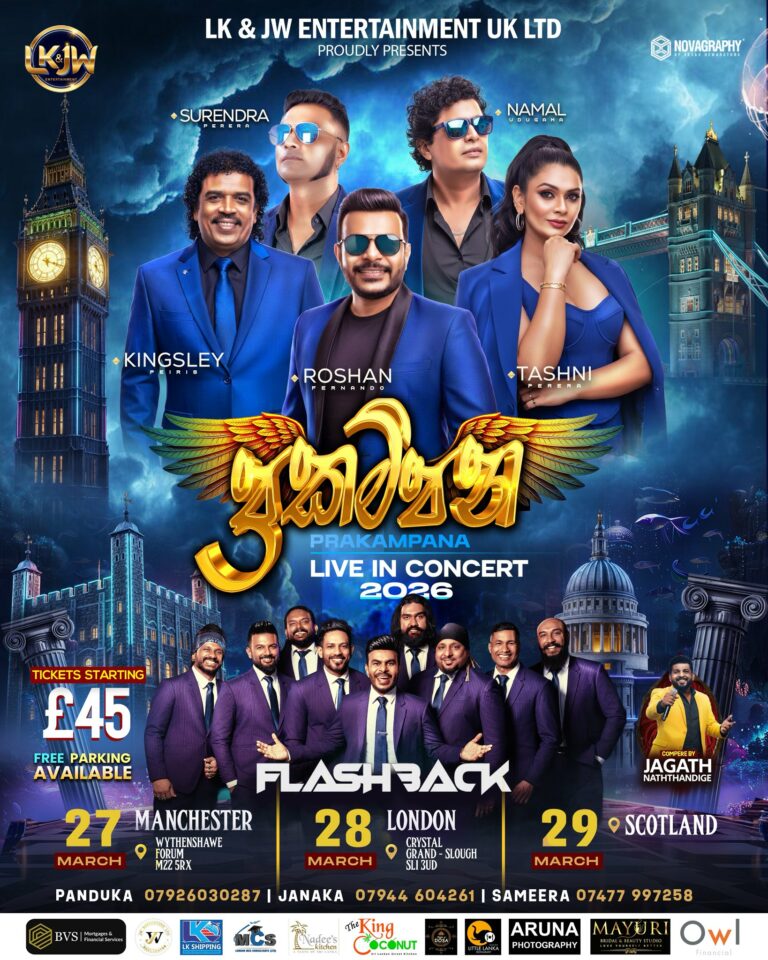 FLASHBACK No. 1 Sri Lankan Live Music Band In London “Flashback”, the current number one brand in Sri Lankan concert music history, is ready for the “Prakampana” massive concert revolution that will bring musical taste to the entire UK in 2026. For the first time in the UK, many huge music personalities will be on […]